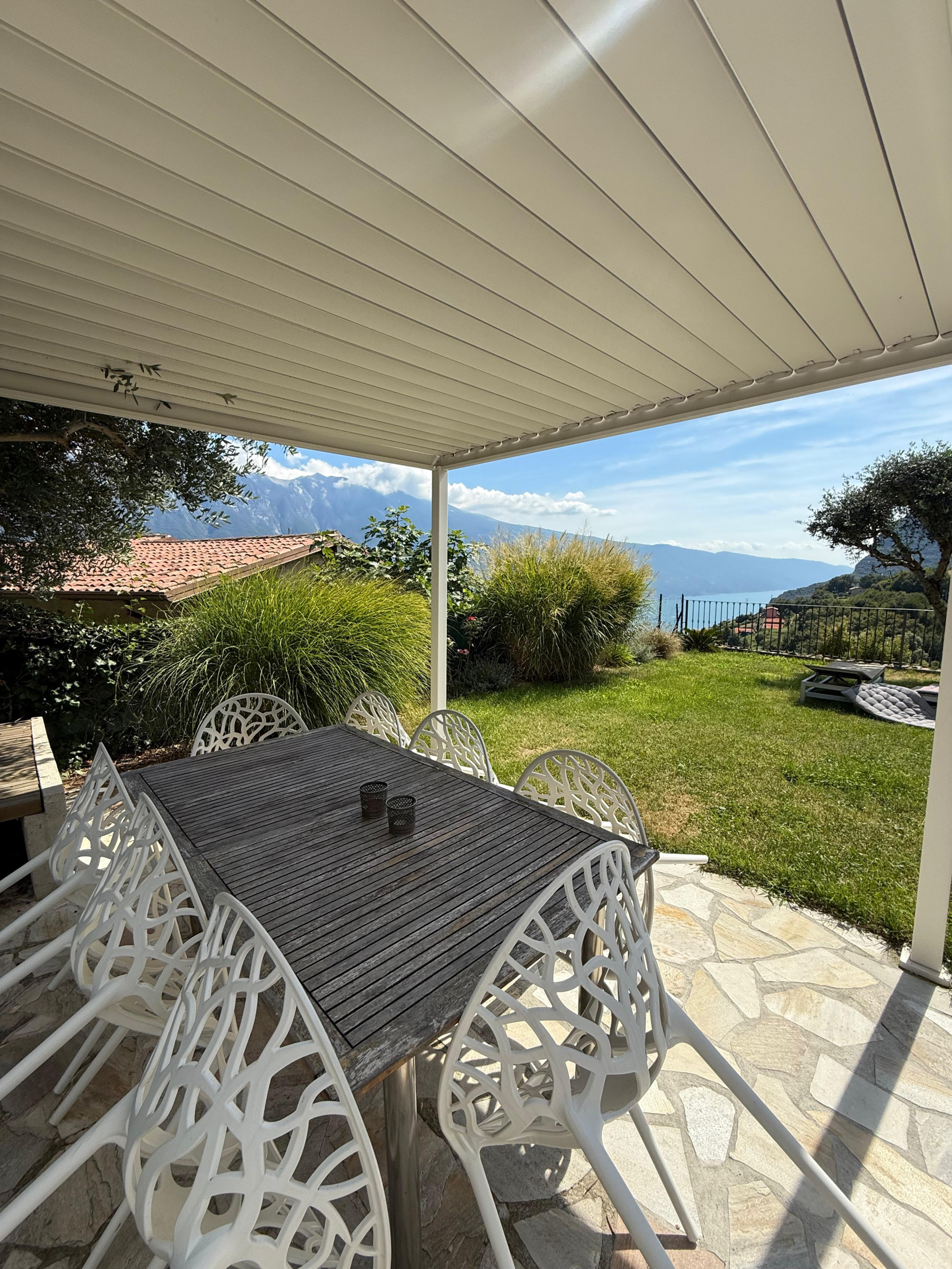 220 m² moderne Eleganz, bis zu 8 Gäste, privater Innenhof und atemberaubender Blick auf See und Berge. Nur 20 Minuten vom Gardasee entfernt, aber eingebettet in die Ruhe und Stille der Natur.